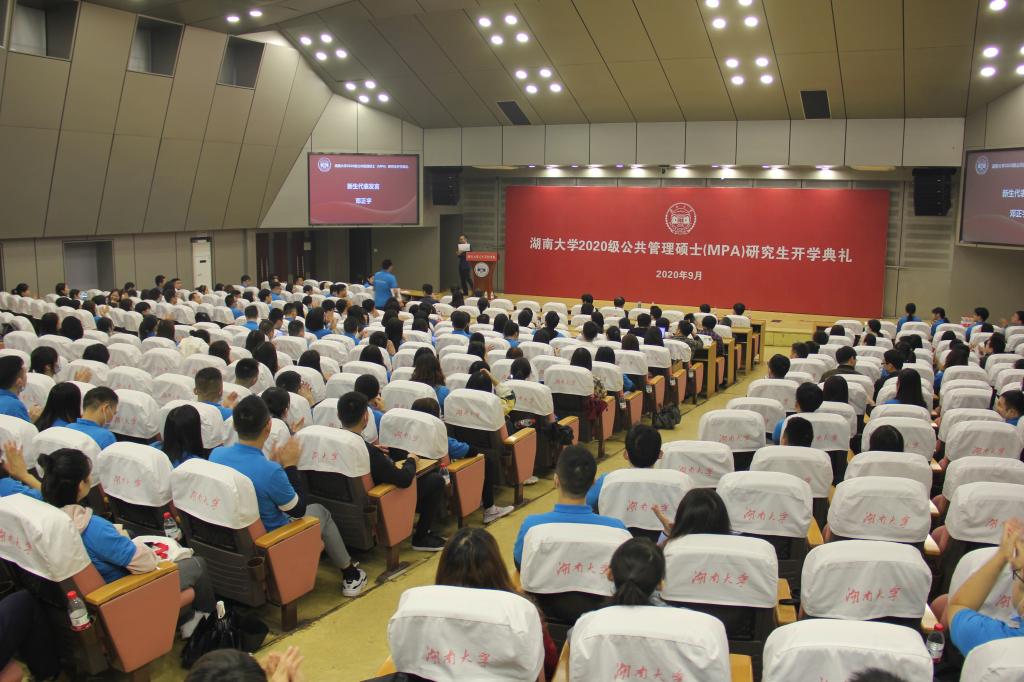 岳麓书院的历史发展与精神传承和新冠肺炎期间MPA学子奋战一线的作为,赞扬MPA学子身上所散发出的“担当”、“尽责”精神与岳麓书院的前辈们一脉相承。“新时代是一个英雄辈出的时代,青年人正逢其时。”讲话最后,李院长引用习近平总书记近日到访岳麓书院所说之话勉励新生不忘初心、勇于担当,在历练中成长。