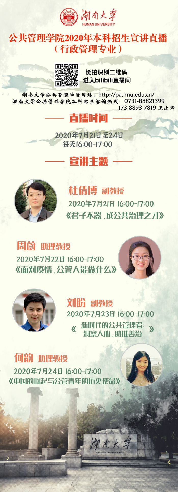 本科招生咨询热线:0731-88821399 17388937819(王老师)