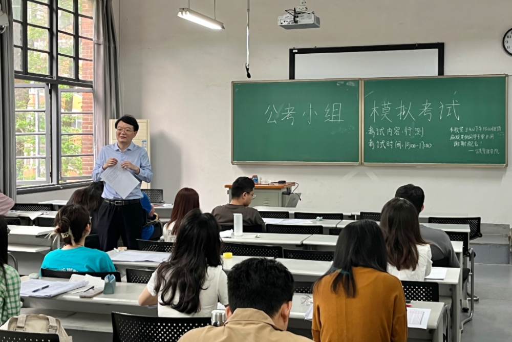 “2023-2024公考小组”第一次全真模拟考试在东楼207举行。模拟考试内容是2023年国家公务员行政职业能力测验,学院本科生和研究生共计30余人参加。考试中,由于试卷题量较大、时间较紧,大家都全神贯注、奋笔疾书。