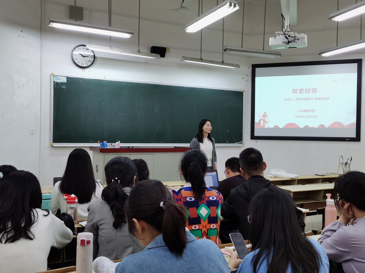 本次讲座旨在加强对学生的纪律与安全意识教育,引导学生明校史校情、知校纪校规,帮助研究生新生坚定理想信念,尽快融入新环境,从而明确自身定位,做好未来规划。杨老师从学校的校风校训、办学历史、办学成就等方面进行了介绍,并着重介绍了校训和校歌,进一步激发了同学们爱校荣校的情怀。
