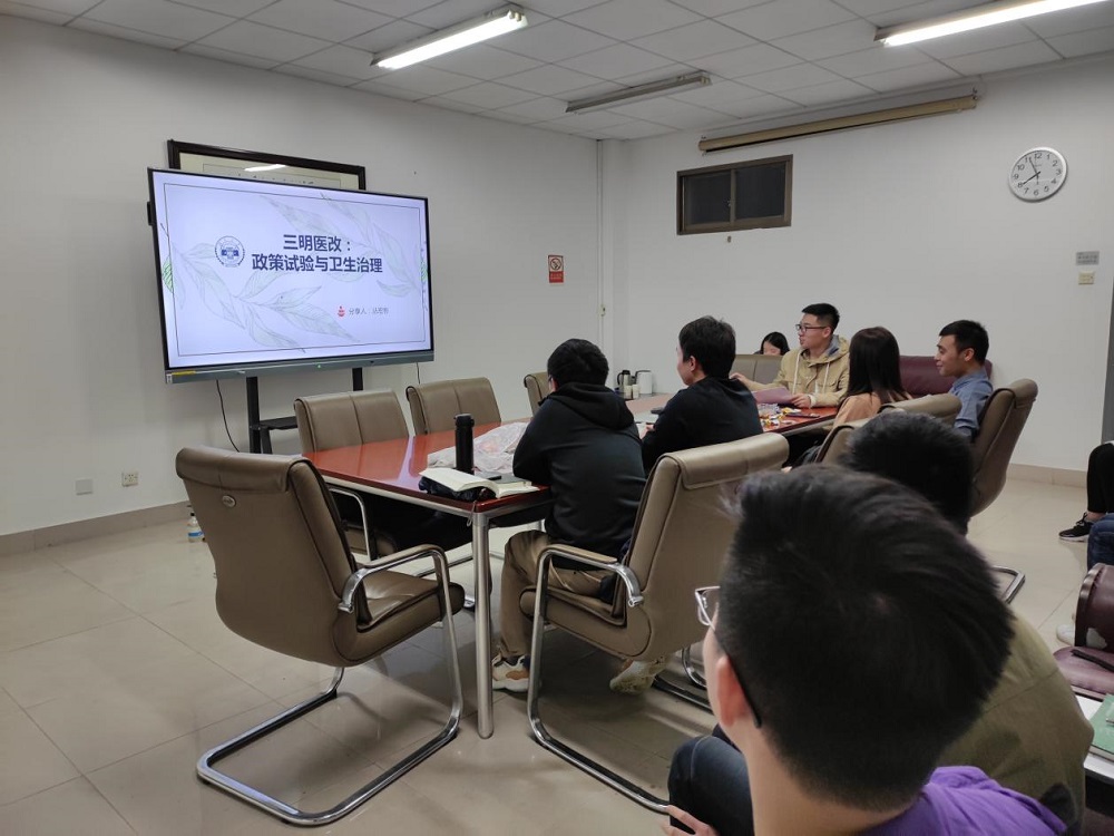 公共健康与社会保障研究所“品读经典”第4期读书会在法学楼423室成功举办。博士研究生孔心悦,硕士研究生肖苏华、丛宏彬、冀启星向我们分享了《三明医改:政策试验与卫生治理》一书。本次读书会由轮值教师何文老师主持,万旋老师作为点评嘉宾参与讨论。