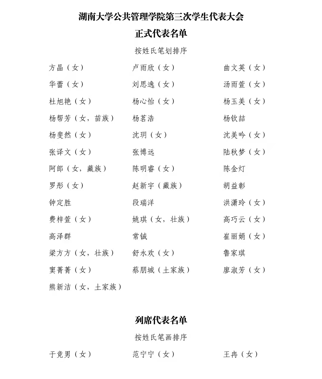 依据《樱花漫画 第三次学生代表大会代表产生办法》等文件,在各班级团支部及挂靠学院社团具体负责下,经名额分配、酝酿推荐、预选、选举合资格审查,现将樱花漫画 第三次学生代表大会代表名单公示如下: