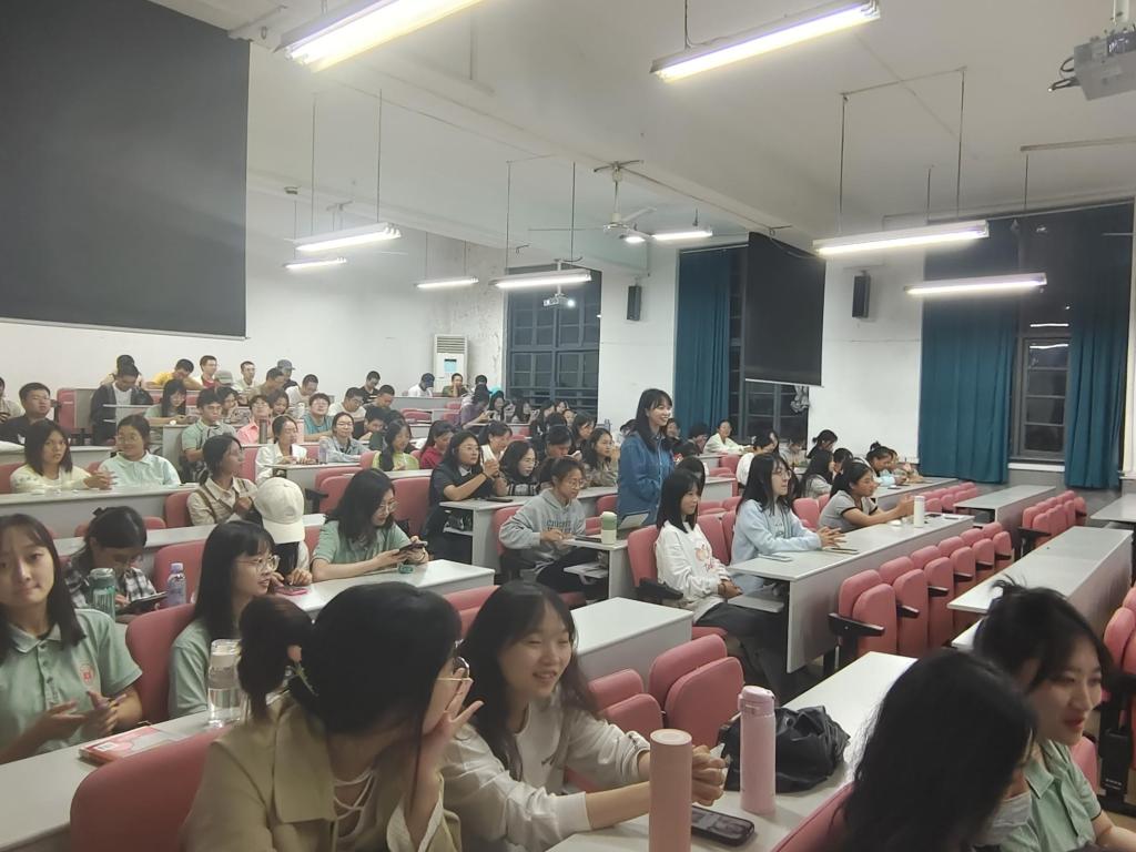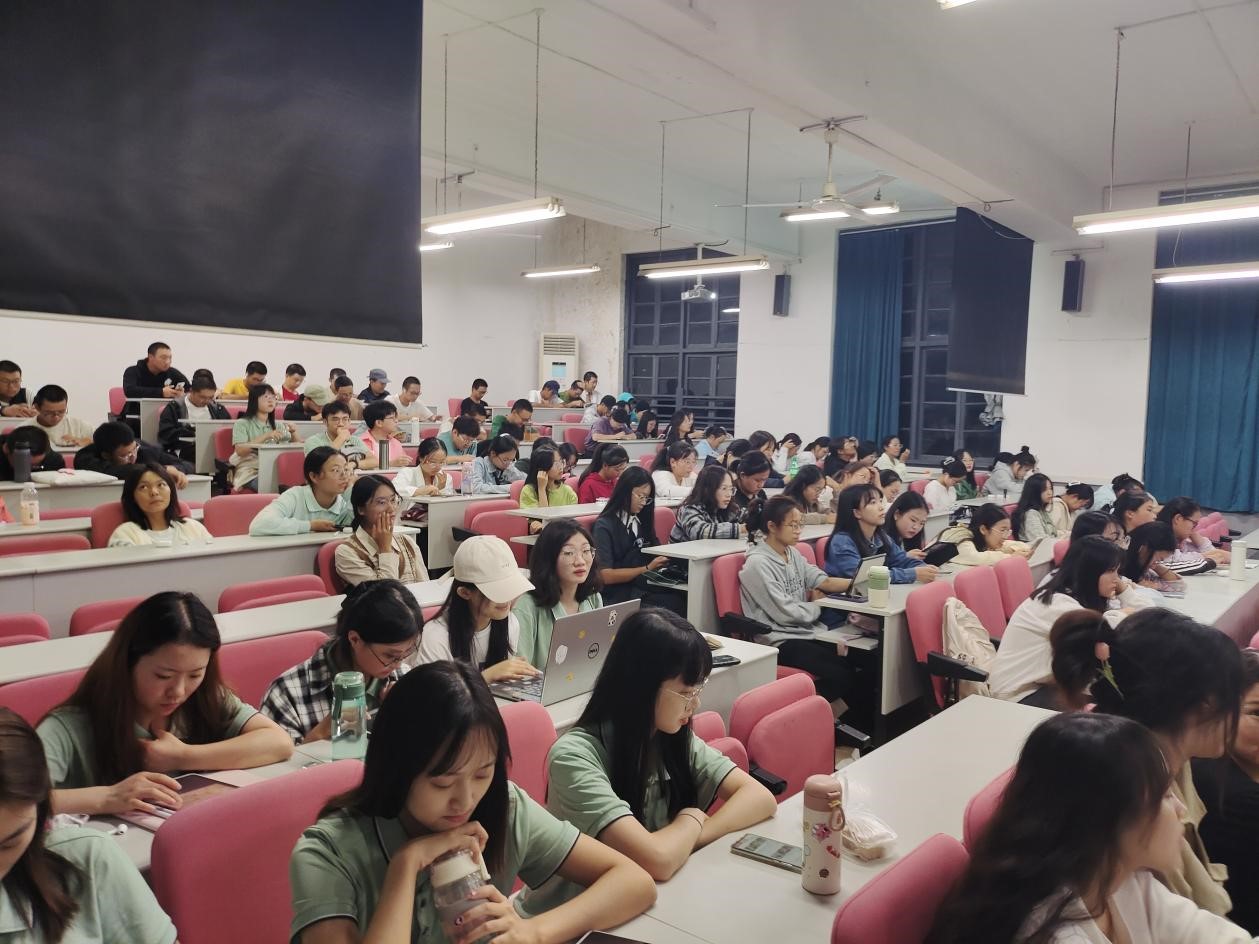 心理健康教育中心林威娜老师主讲,全体2023级本科生和研究生新生到场学习。