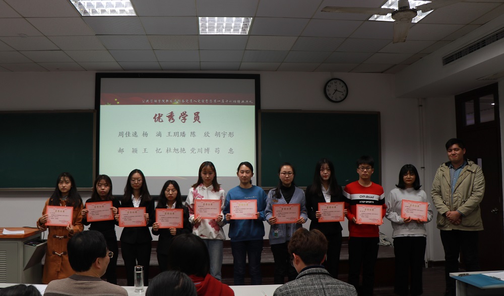 闫振振老师宣读了本届青马班结业决定。本届干训班共有40名学员参加,共开展了包括两期学生干部工作能力培训、“不忘初心,牢记使命”理论知识考试、党课教育、定向越野素质拓展以及红色教育基地参观在内的六期培训活动。院团委组织部结合干训班学员在整个六期活动中的表现,秉承公平、公正、公开的原则,严格按照考核细则对参加干部培训班的学员进行量化考评,最终评选出鲁佳琪、刘昱呈等20名优秀学员。作为优秀学员代表的2019级本科生鲁家琪同学说道,“我希望同学们能大胆尝试,减少自身偏见带给自己的不利影响,利用学院安排的活动提升自己,让自己离卓越更近一步。”