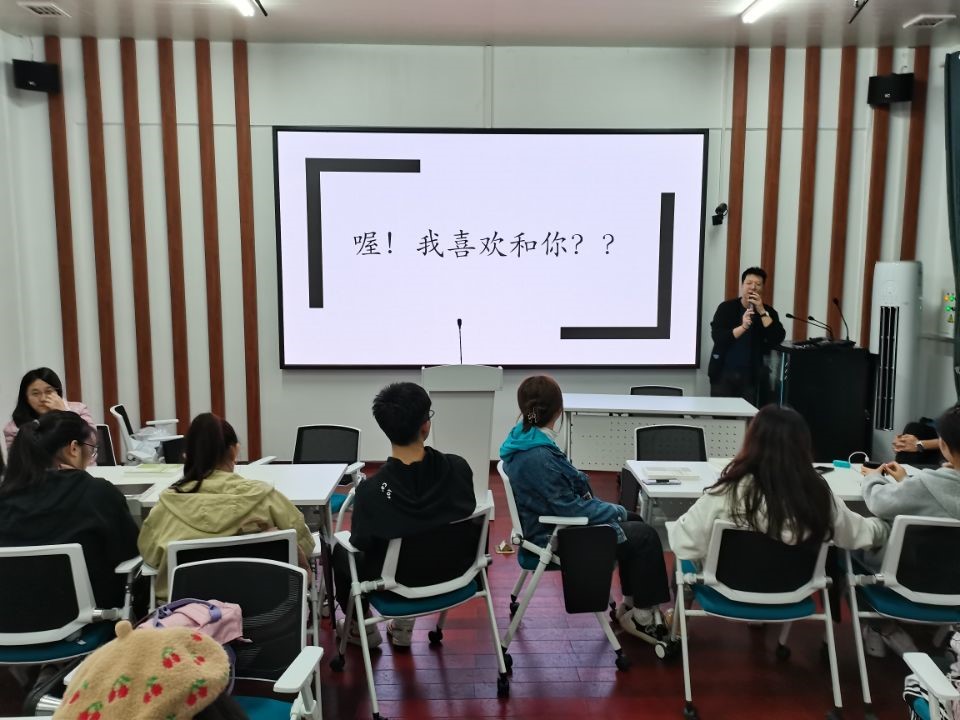 院楼211教室开展团体辅导活动。本次活动由李释然老师主持,行政2001班全体同学参与。
