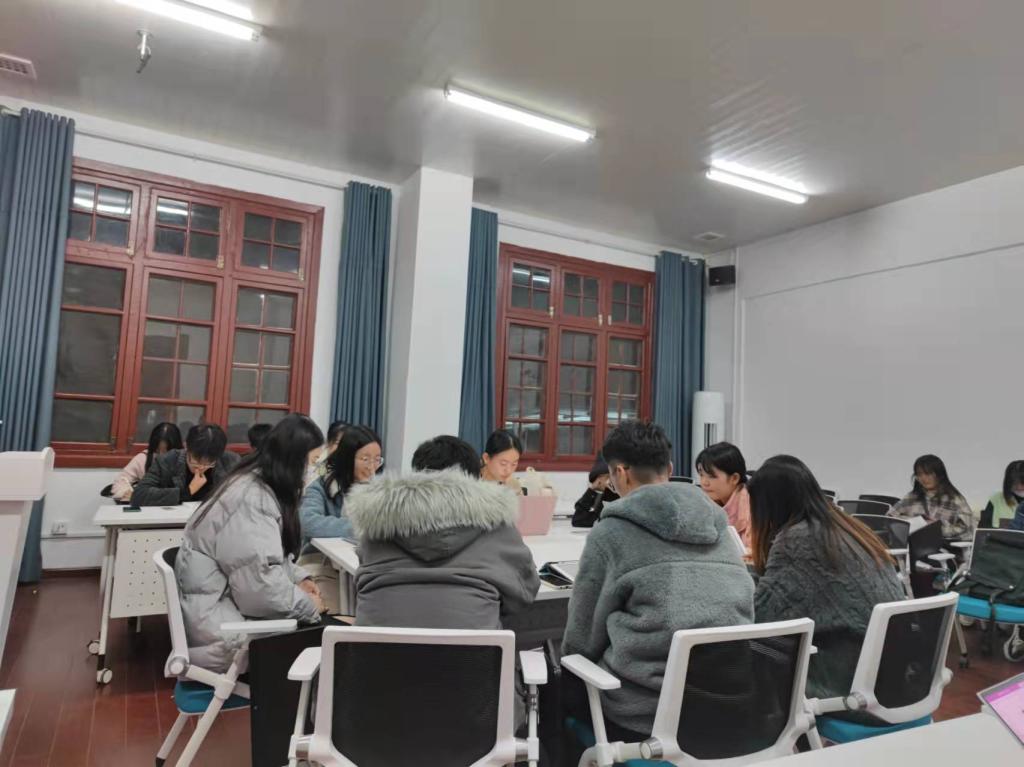 闫老师讲述了一些典型案例和心理健康问题出现时常常伴随的行为特征,并给出具体案例,让心理干部围坐一起,总结相关特征和表现,共同讨论相应处理办法。