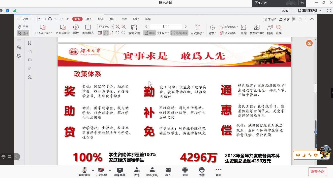 全体本科生的资助政策宣讲会。