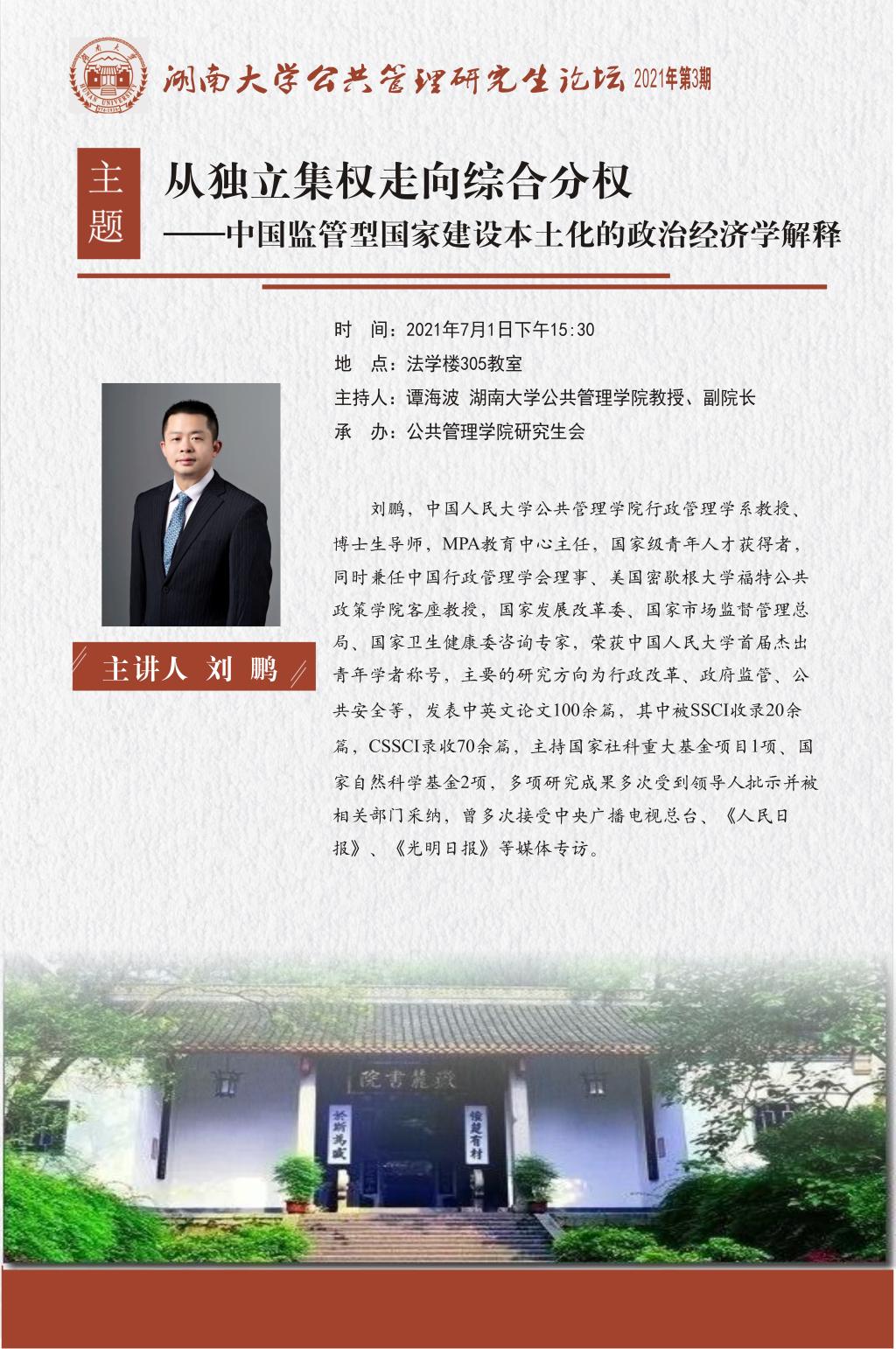 行政管理学系教授、博士生导师,MPA教育中心主任,国家级青年人才获得者,同时兼任中国行政管理学会理事、美国密歇根大学福特公共政策学院客座教授,国家发展改革委、国家市场监督管理总局、国家卫生健康委咨询专家,荣获中国人民大学首届杰出青年学者称号,主要的研究方向为行政改革、政府监管、公共安全等,发表中英文论文100余篇,其中被SSCI收录20余篇,CSSCI录收70余篇,主持国家社科重大基金项目1项、国家自然科学基金2项,多项研究成果多次受到领导人批示并被相关部门采纳,曾多次接受中央广播电视总台、《人民日报》、《光明日报》等媒体专访。