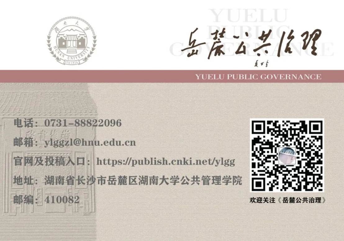 、《岳麓公共治理》杂志将于2024年7月在长沙举办“第一届岳麓公共治理青年论文工作坊”。诚邀广大青年学者不吝赐稿,相聚岳麓山下、湘江之畔,为中国式现代化贡献公共管理青年学者智慧和力量。